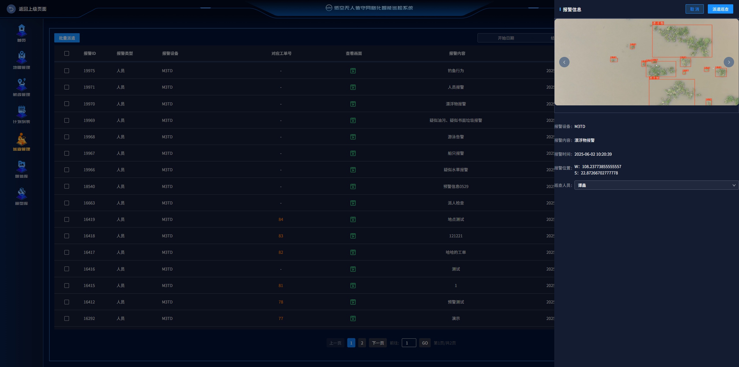 指挥中心的管理人员可通过远程调度系统为无人机规划线路与任务可对无人机进行排班,完成对管理区域的无人机进行远程控制。无人机将采集的数据上传至云端